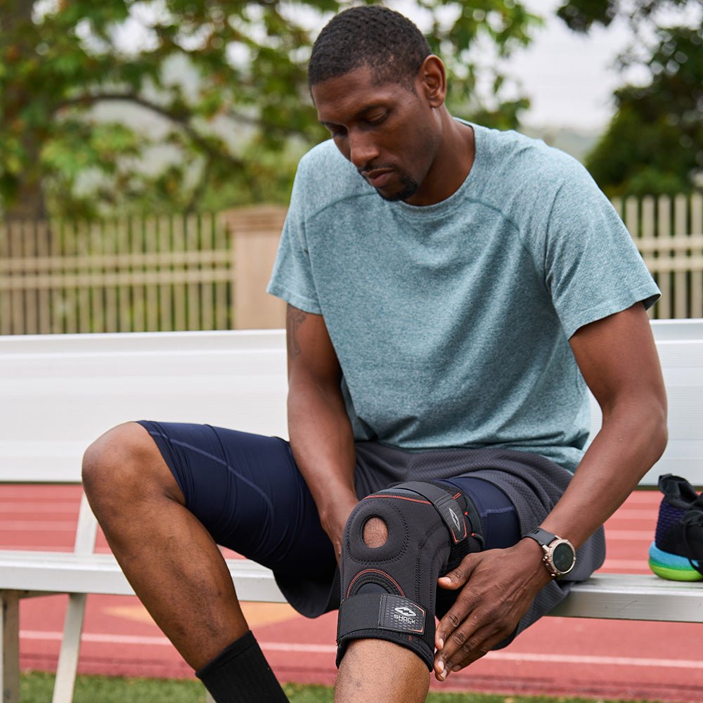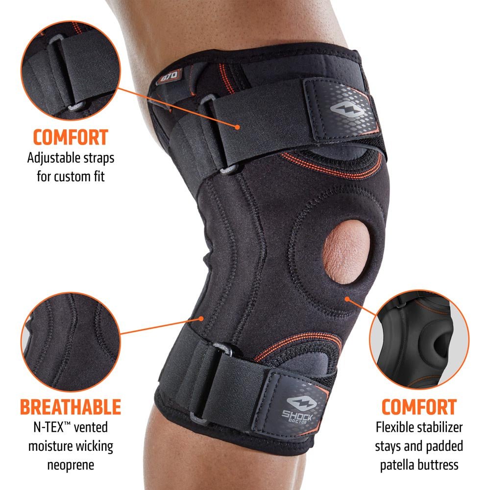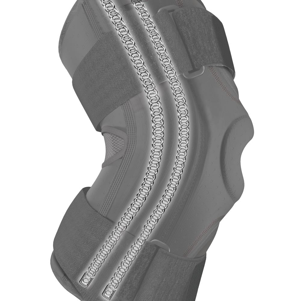 • Padded patella support zone secures and maintains a tight seal of kneecap
